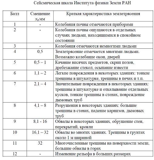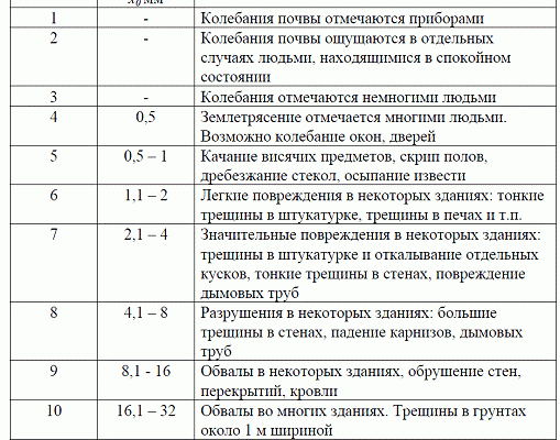 | Классификация сейсмических районов | Определение сейсмичности территории по шкале Меркалли и локальных параметрах. |
